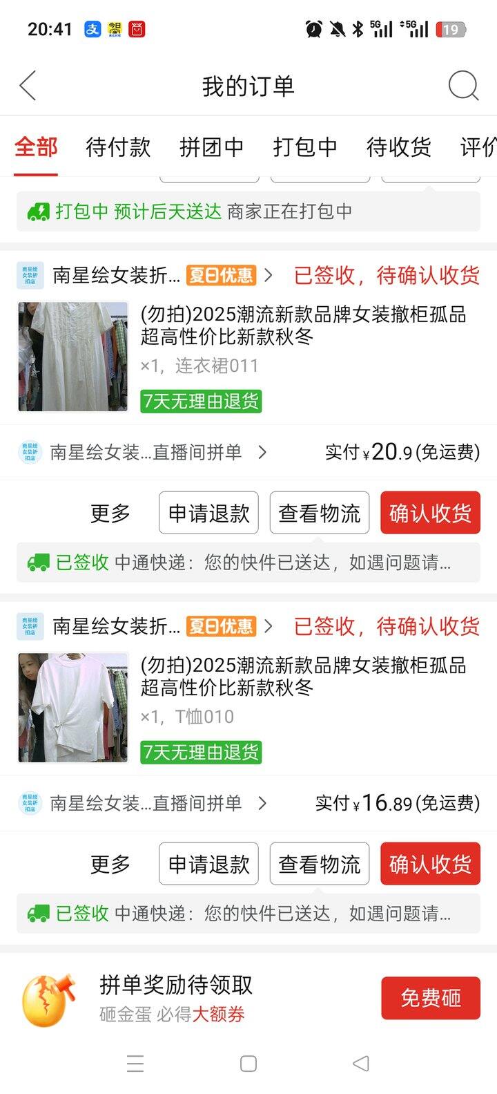 3、拼多多店铺:南星绘女装折扣店需要自己挑挑,店铺里衣服详情页拍的挺细,件数多,直播款式更多,更便宜,但是有的没有吊牌,介意勿拍,买过一个棉t,和一个长裙,季抛款