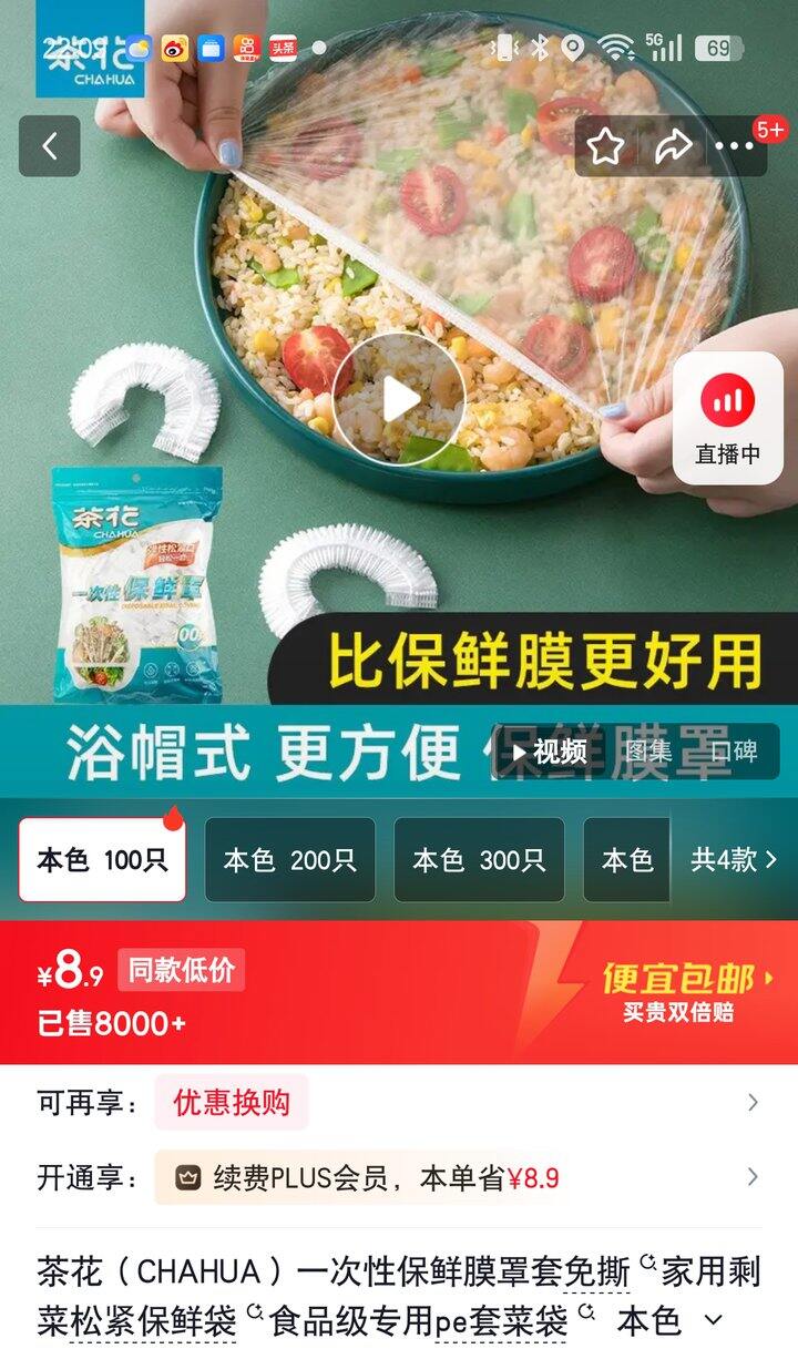 ❷一次性保鲜膜罩𝟏𝟎𝟎只【6.9】
