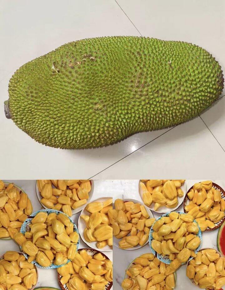 香香甜甜的菠萝蜜呀!剥开拉丝,实现菠萝蜜自由了!外面一小盒就10几块了,这个一整个,可以剥很多肉,很划算,上次反馈很不错!