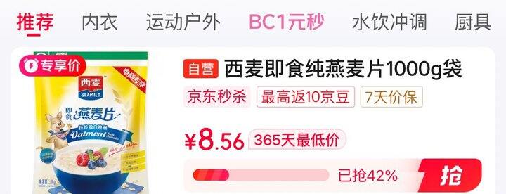 拍下8.6西麦即食燕麦片1000g袋谷物代餐