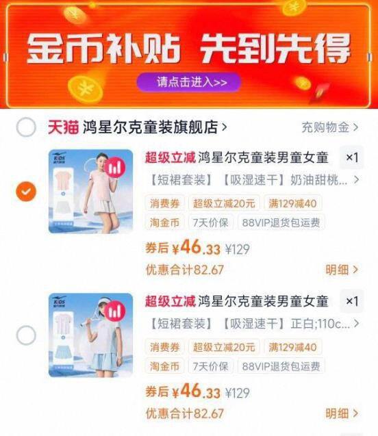 下拉详情拍,46.3,多款可选~鸿星尔克 儿童凉感速干运动套装https://m.tb.cn/h.is9WnS0