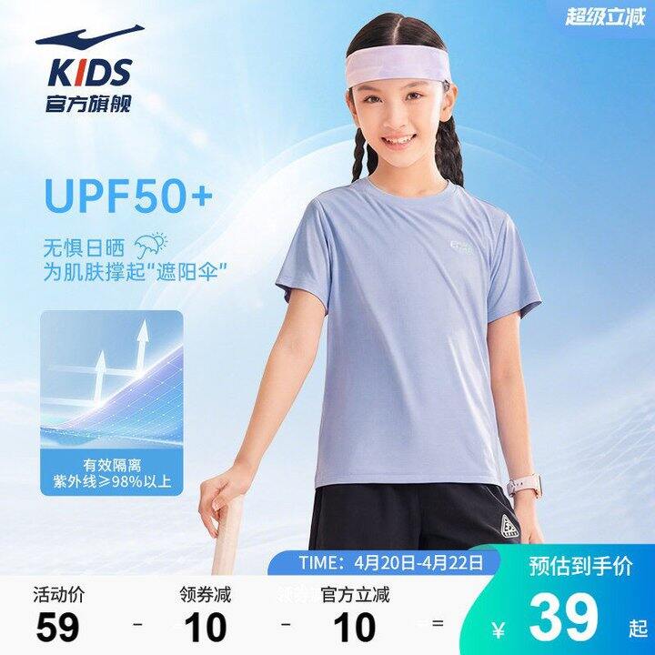 26.9元多款可选~右上角进“淘金币”拍~鸿星尔克 儿童凉感速干短袖T恤https://m.tb.cn/h.is91urB
