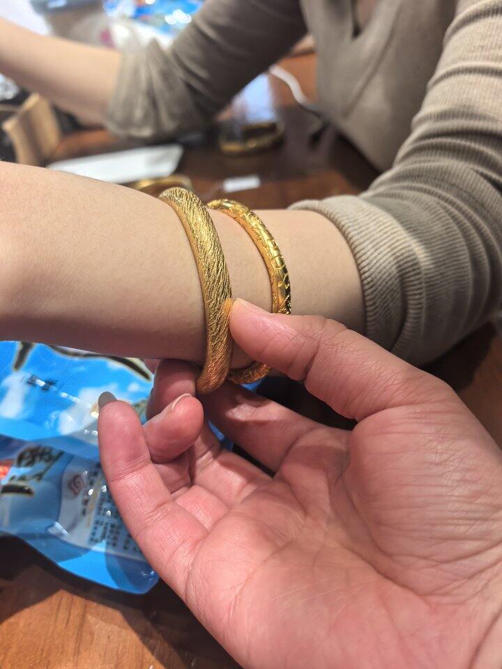 最近在苏州开了分店,朋友约了有名的王师傅,他每个月只来苏州两三天,今天陪朋友来打金手镯,她选的千丝万缕,我拍不出来效果,挺好看的,工费很便宜,25一克。