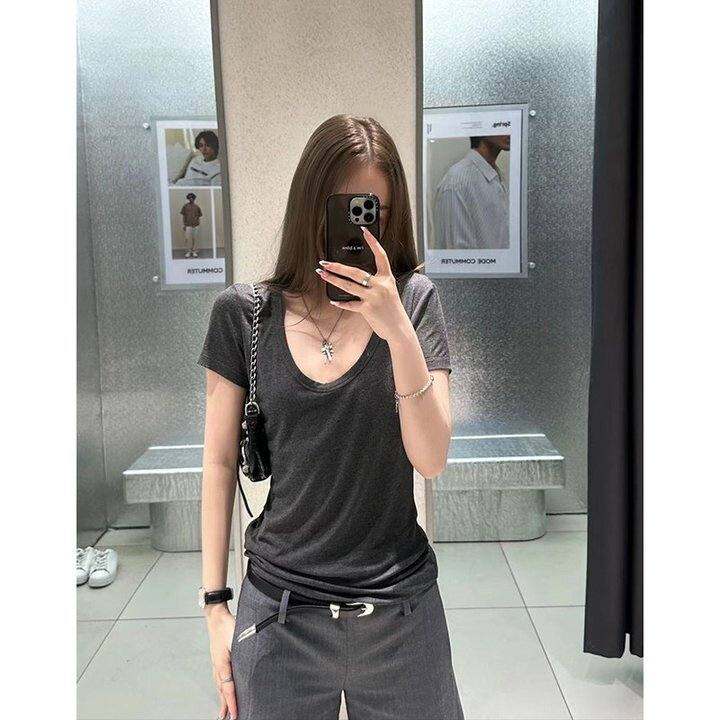 Xzichic夏日垂垂正肩U领多色基础舒服好穿tee短袖T恤夏季新款上衣