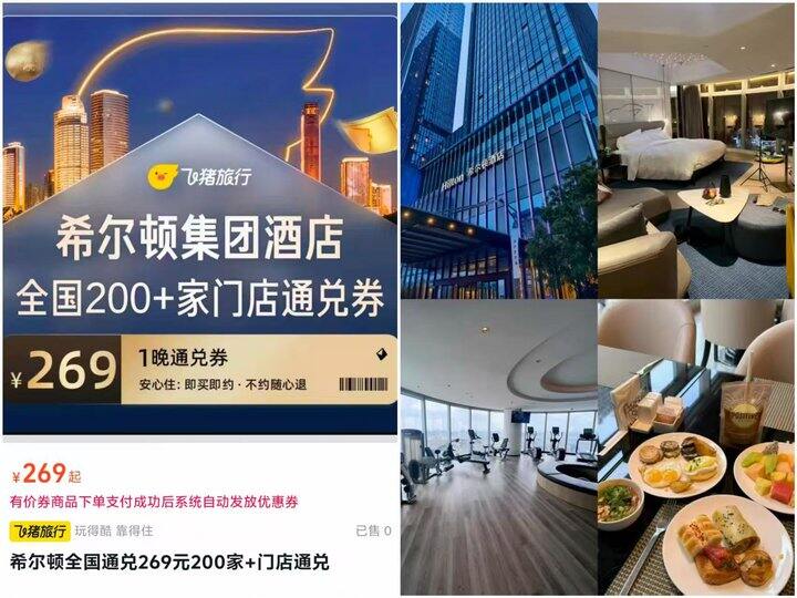 𝟐𝟔𝟗💰希尔顿酒店𝟏晚通兑券