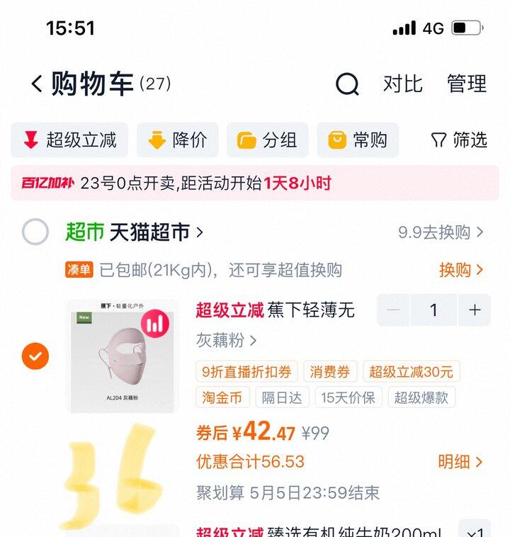 猫超首页点击超级补贴,页面领取39-6,找到它加购