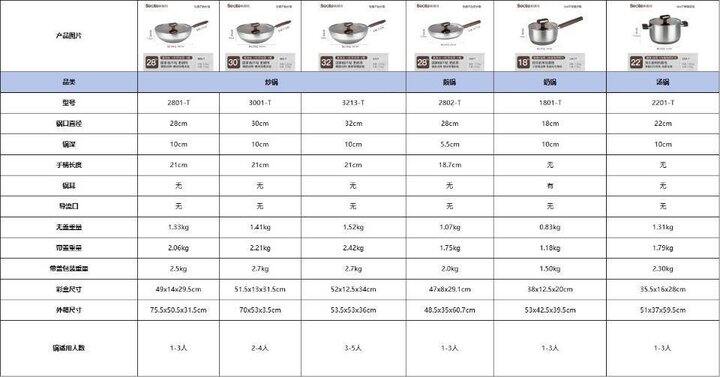 奶锅/汤锅/煎锅/炒锅:18~34cm