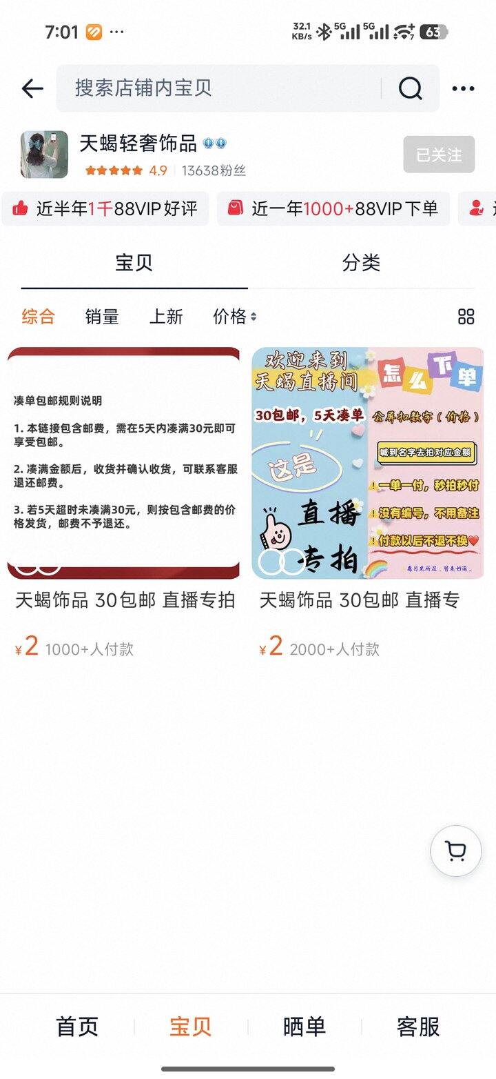 路友姐妹推荐的,蹲了几次直播买个不少饰品,都物有所值,偶尔有xuanzi ajidou一些品牌的原标,玩偶啊帽子啥的也会上新,曾有一天下二十多单记录[闭眼]