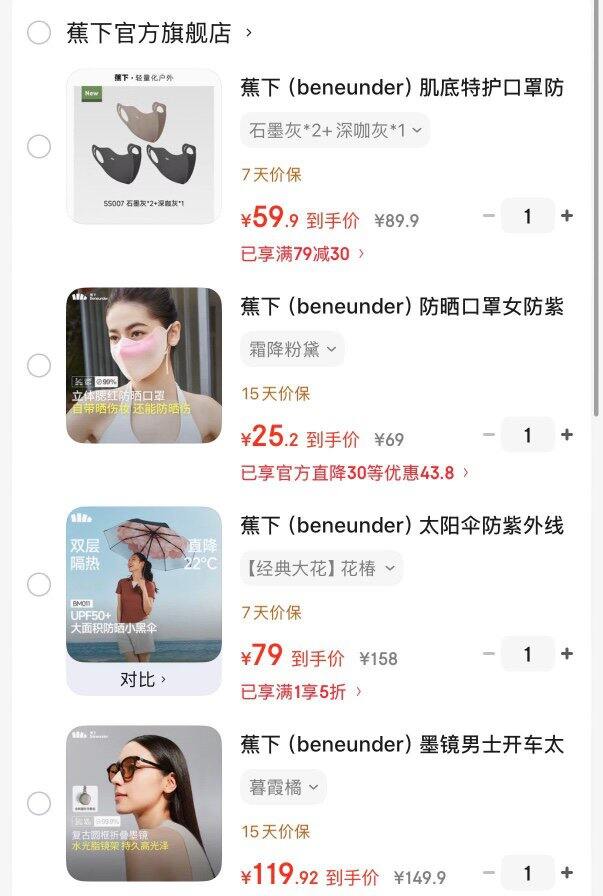 蕉下肌底特护防晒口罩3个