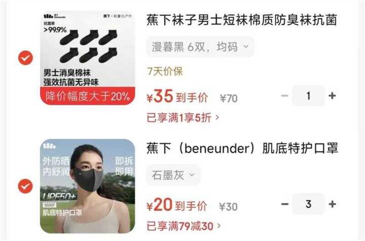 1⃣️蕉下五折6双袜子💰35,折5.8/双