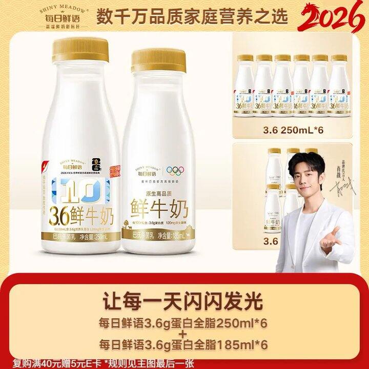 每日鲜语 3.6g蛋白250mlx6+3.6g蛋白185mlx6共12瓶,2首单【16.51】