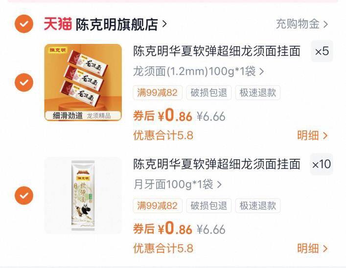 陈克明月牙龙须面100g