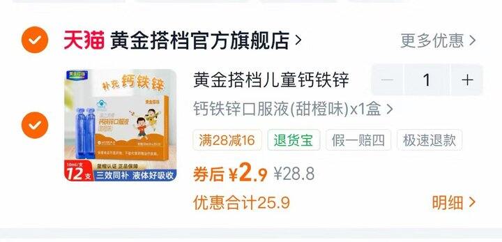 黄金搭档儿童钙铁锌口服液