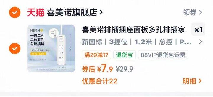 ❷喜美诺多孔排插1.2米💰7.9