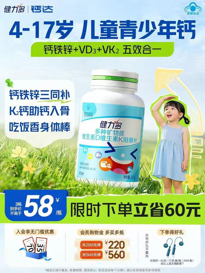 𝗩𝗗𝟯+𝗩𝗞𝟮+钙铁锌 才 4.9/瓶