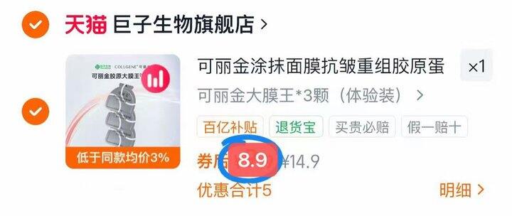 叠9.5红包 可丽金大膜王3颗💰8.9