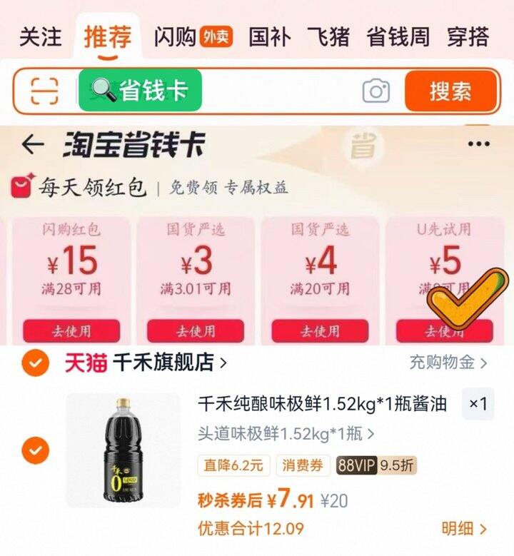 ❶淘宝app首页搜:省钱卡