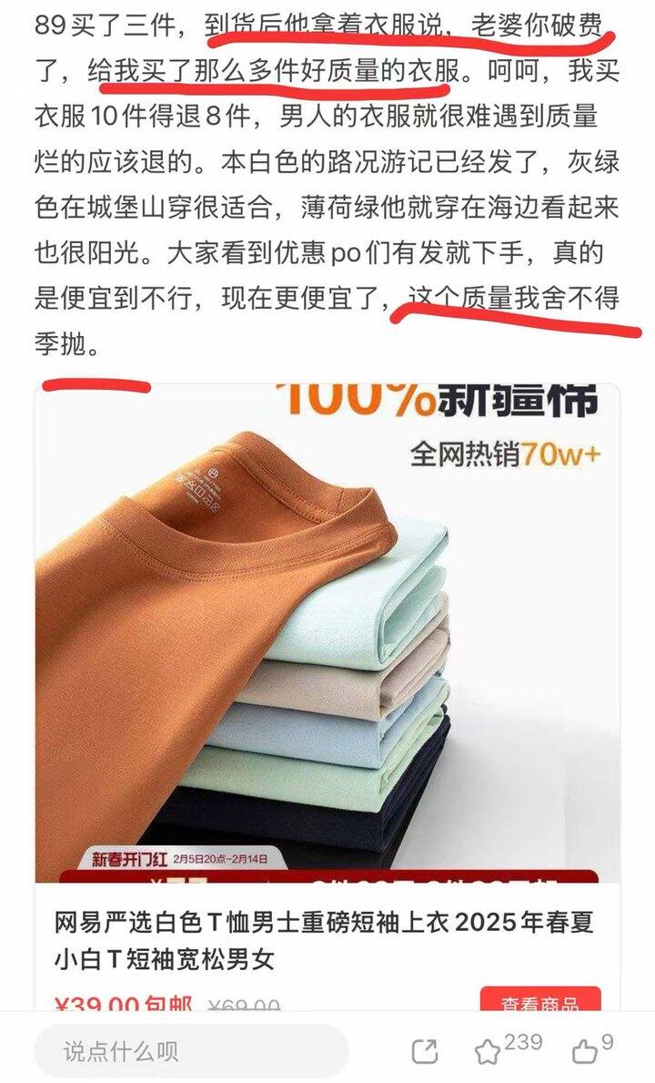 💰22.8 网易严选重磅纯棉情侣短袖