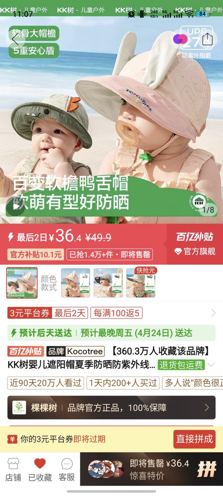 帽子可爱,一开始不爱戴,这几天出门太晒了自己也意识到了,开始主动拿帽子要戴了