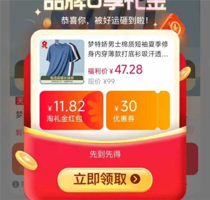 天猫弹19.6淘礼金+30补贴,点击右上角“…”去淘金币页面拍下,再叠加9折服饰金刚券,实付66.6