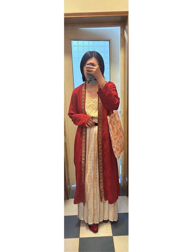 ❤️②看舞剧《红楼梦》——上衣:朝辞间寻梅 下裙:早年来料 吊带:来料小金花 包包:广东省博物馆文创(寻梅不愧是校服,实物超好看)