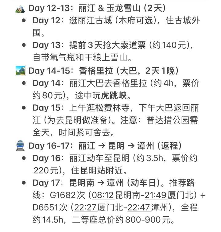 🗓️ 17天“滇西+滇西北”高性价比路线