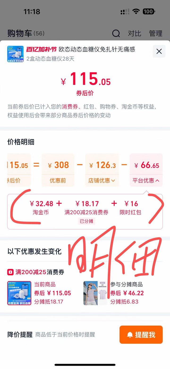 欧态115两个!选两个装,如图用上金币。店铺自动弹红包-16,用上淘会员200-25的凑单后,均价115/2=57.5一个!