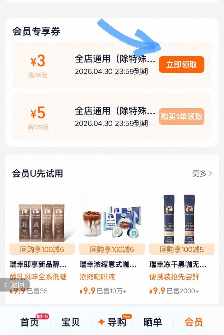 ❹瑞幸入会领59-3券