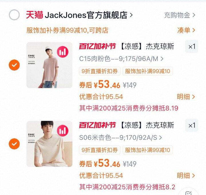 ❷只领礼金和券;【凉感】杰克琼斯男装春夏T恤