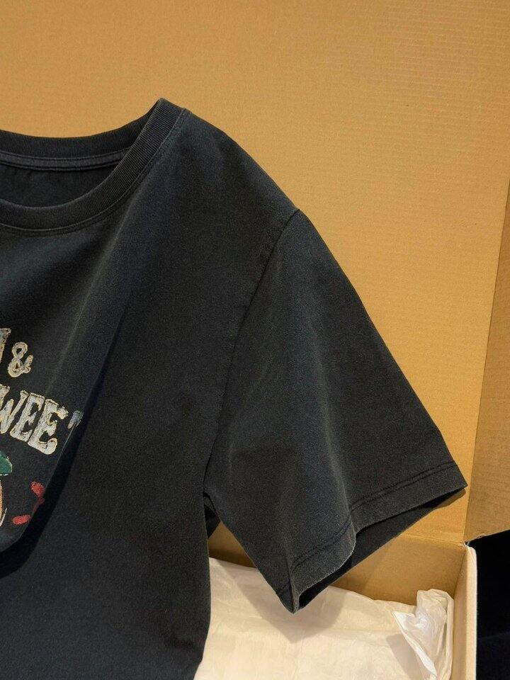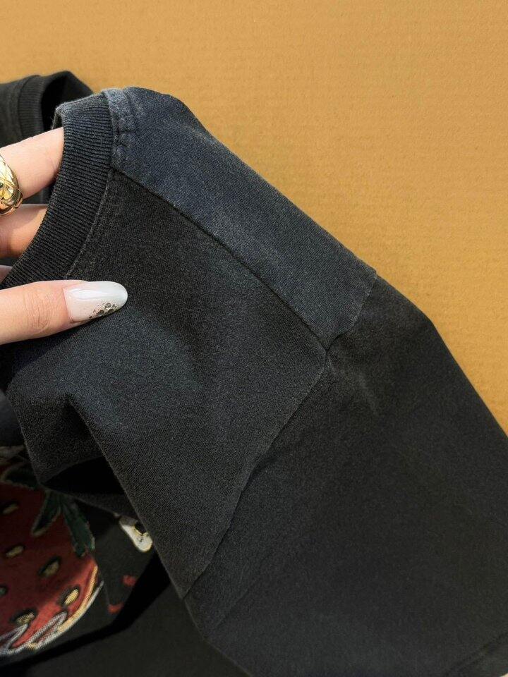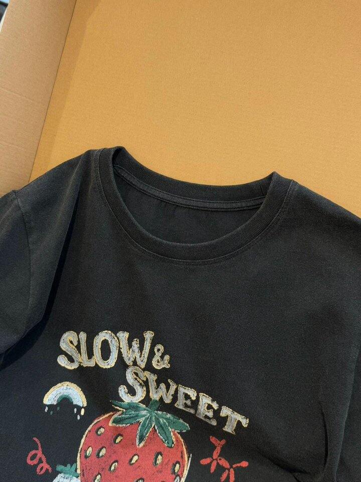 不是普通俗气的水果印花,胶印特意做了晕染做旧感,搭配水洗做旧面料,质感直接拉满