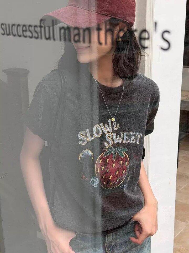 🍓一眼沦陷的甜酷氛围感,温柔又带点小个性,完全是韩系少女本命T~