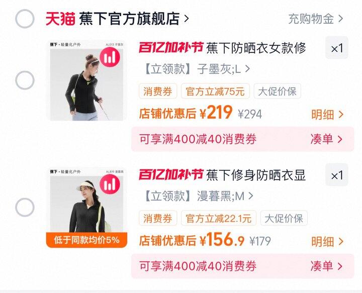 在蕉下线下试了一件防晒衣,价格349就没买,而且店里人很多没怎么逛就试了这一件衣服就走了