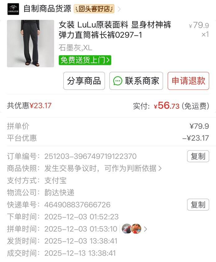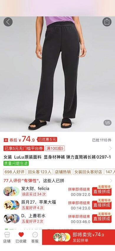 裤子链接在图三,我买的时候有平台优惠,后来想给我妈买的时候就蹲不到平台折扣了,折扣可遇不可求,但七十多也是值得的,因为它真的是lulu原材料,特别舒服,但毕竟有十倍差额,做工比不上lulu。