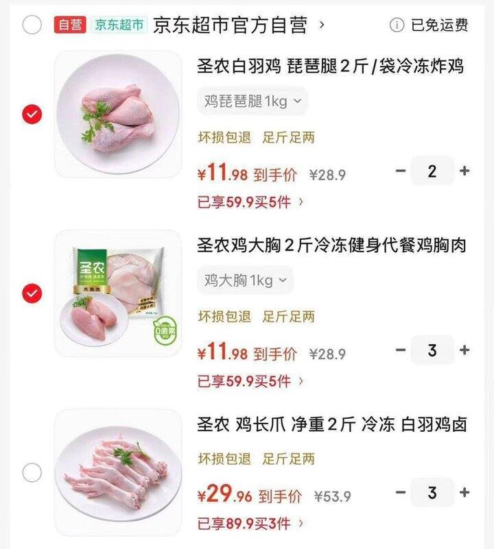 2️⃣圣农 白羽鸡长爪净重2斤