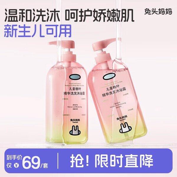 【19.9/瓶】兔头妈妈 儿童桃叶精华洗发沐浴露500g*2 https://u.jd.com/f6C3DBg领69-20券https://3.cn/-2LEmEw8