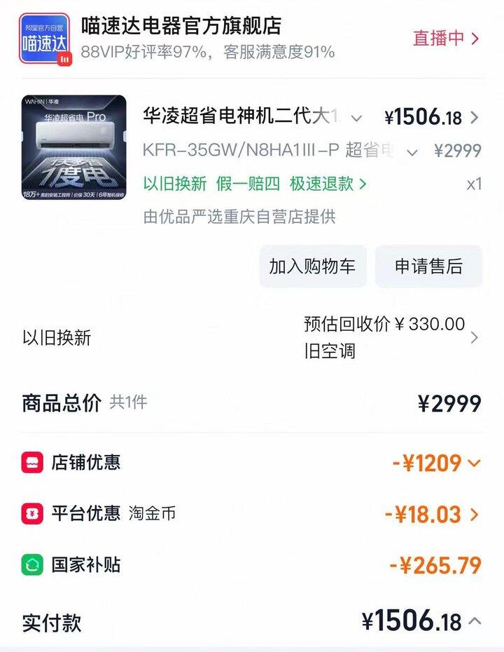 第二台还想买的时候就没活动了,然后最后在天猫买的.以旧换新 旧空调抵了330 算下来花了1200多