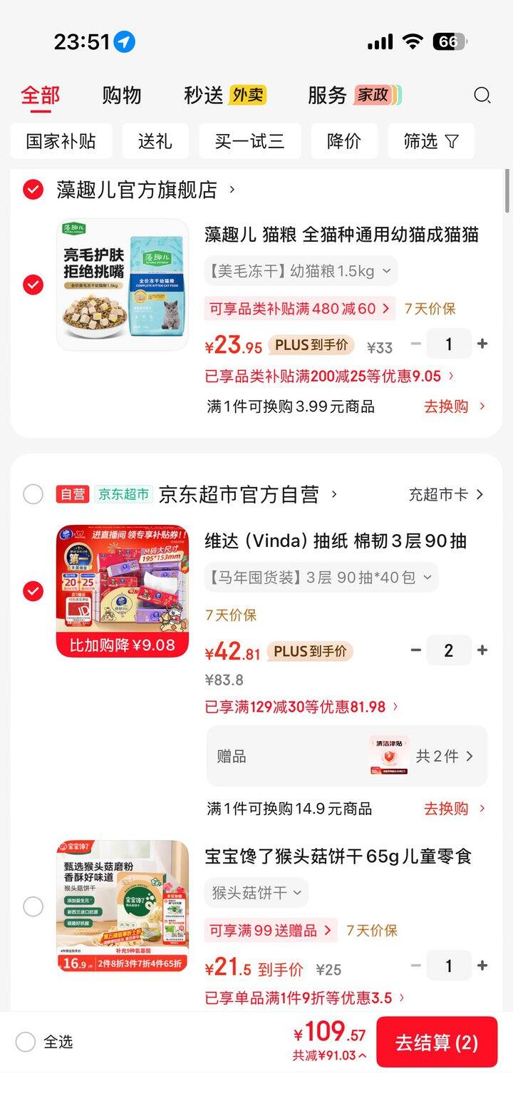 维达抽纸 Plus到手85.62