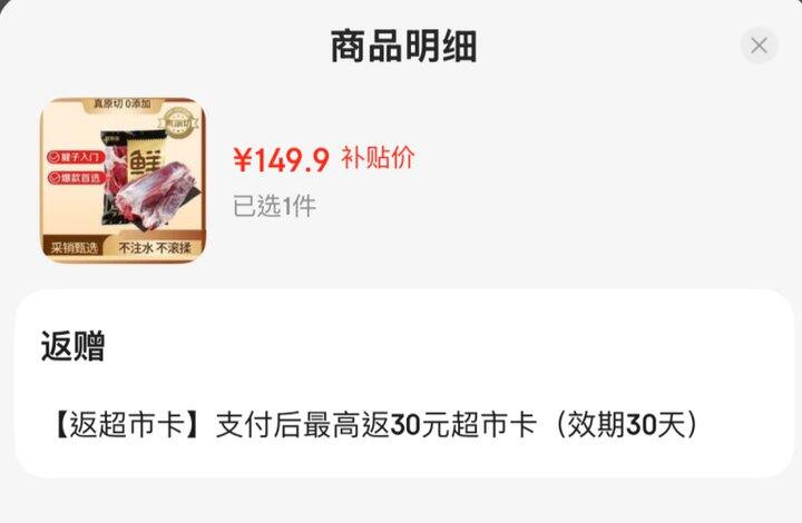 实.付💰149.9,反30超市卡💰119.9