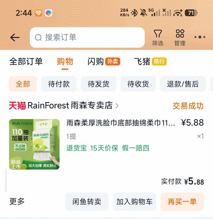 4雨森洗脸巾之前一直用囤货的徳佑绿色那款洗脸巾,用完了之后看到有推荐这款的,我就买了,一包110抽5.88挺值我觉得,快没了在买不用囤货挺好,我一屋子破烂[鹿哭]