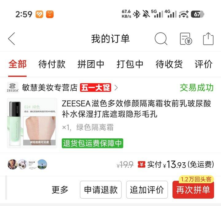 7滋色绿色隔离这个隔离也是一样的,我抹的次数有限(本人太懒)我有红血丝买的绿色的,