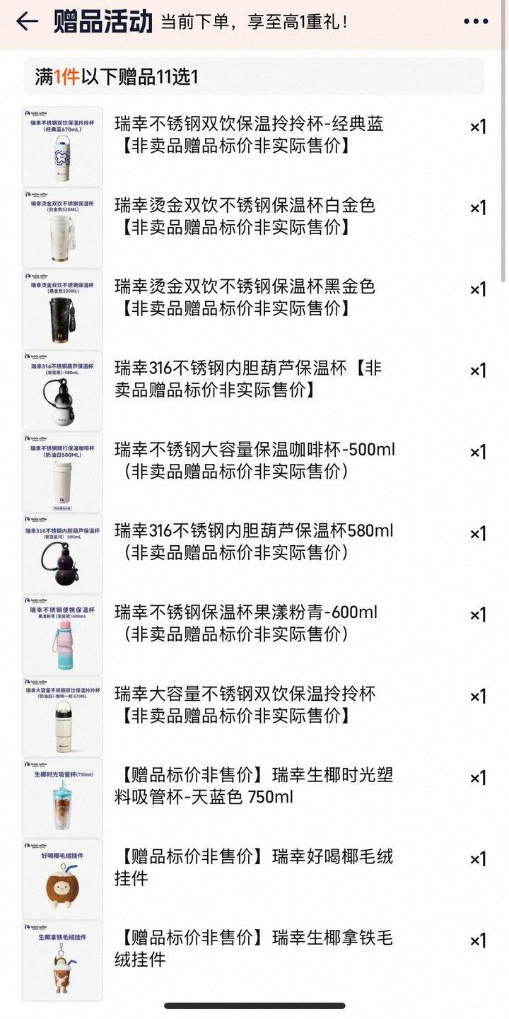 加贈贈品保温杯十一选一
