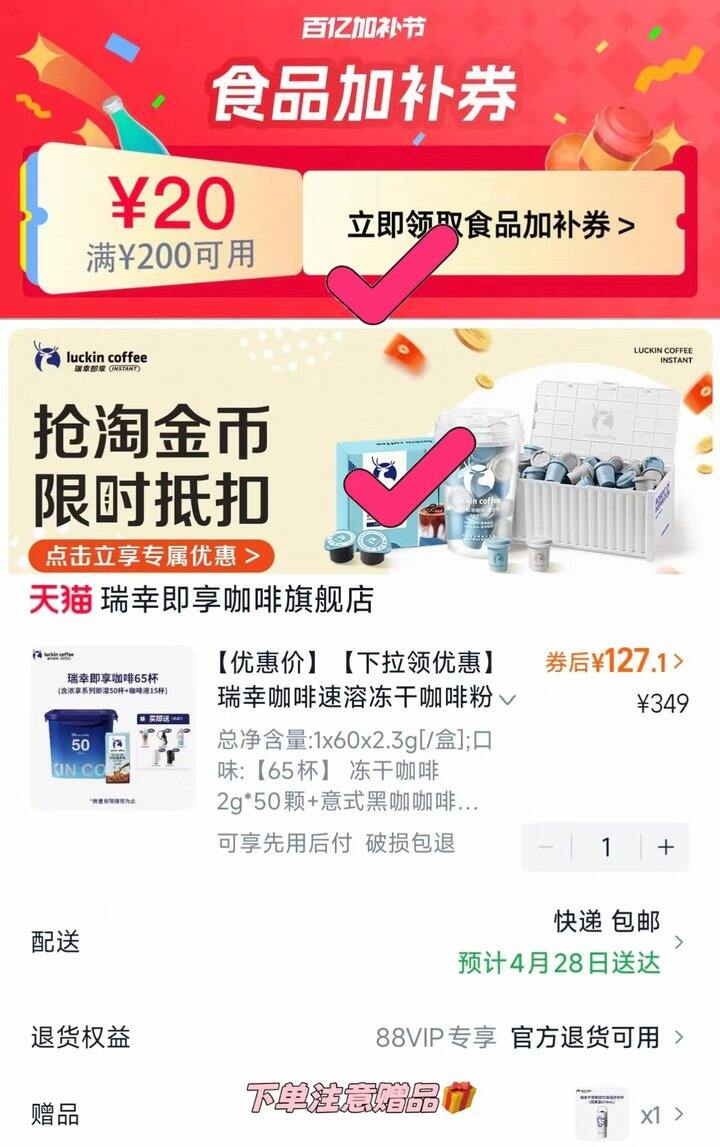 瑞幸冻干咖啡粉今日双叠加好价!