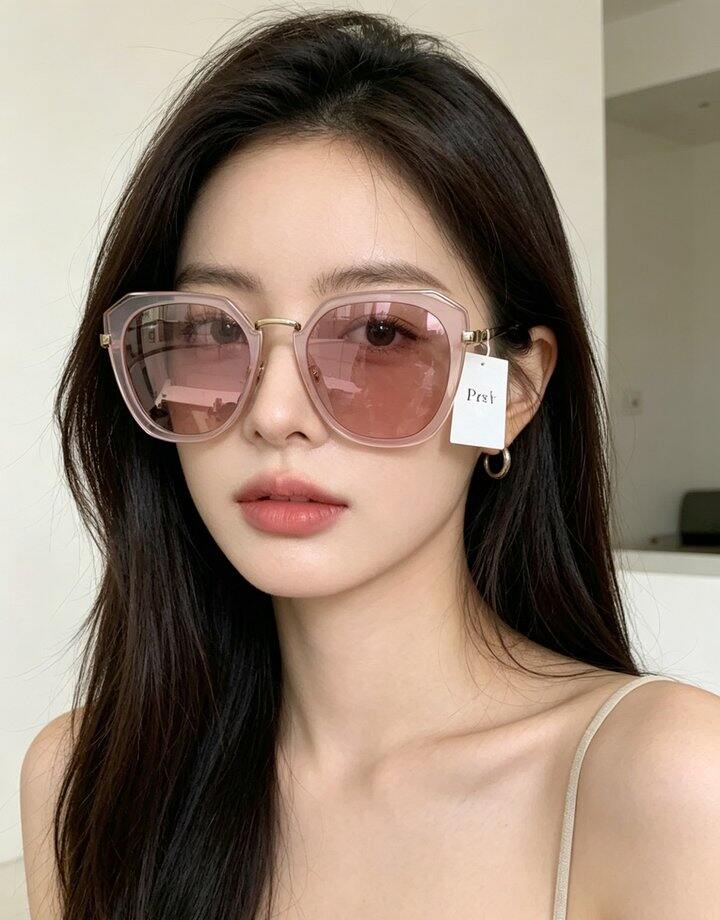 正品,实物更高级。 低饱和蜜桃粉镜框,温柔又显白。