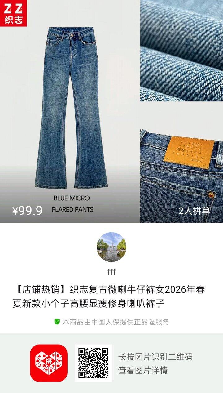 前面看路友推荐的织志牛仔裤,拼dd收藏后看到页面推荐别款,更便宜的,想着买来试试,结果很适合,我160,105,买的m码,裤长穿平底鞋正好(已有的一条偏长,走哪都担心裤脚成拖布),颜色偏浅,料子偏薄,很适合这个季节,而且价格不贵,蹲好价70+,反正我是爱了,而且拼不合适退货也很方便,所以还是很推荐的!