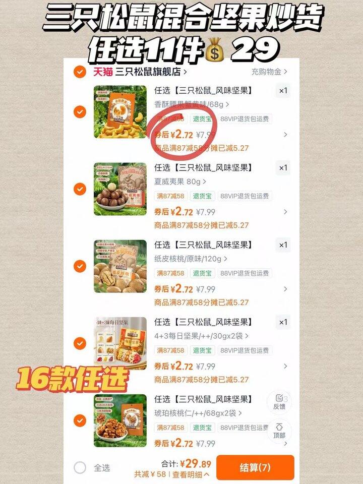 任选11件💰29 混合坚果炒货 开心果!巴旦木!小白杏核都还有!