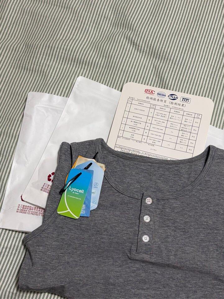 我选了一白一灰两件,服感好舒服,一摸就知道是好货,包装、质检报告、标准吊牌一应俱全。为什么晒图只有灰色呢?因为白色已经火速丢洗衣机洗了