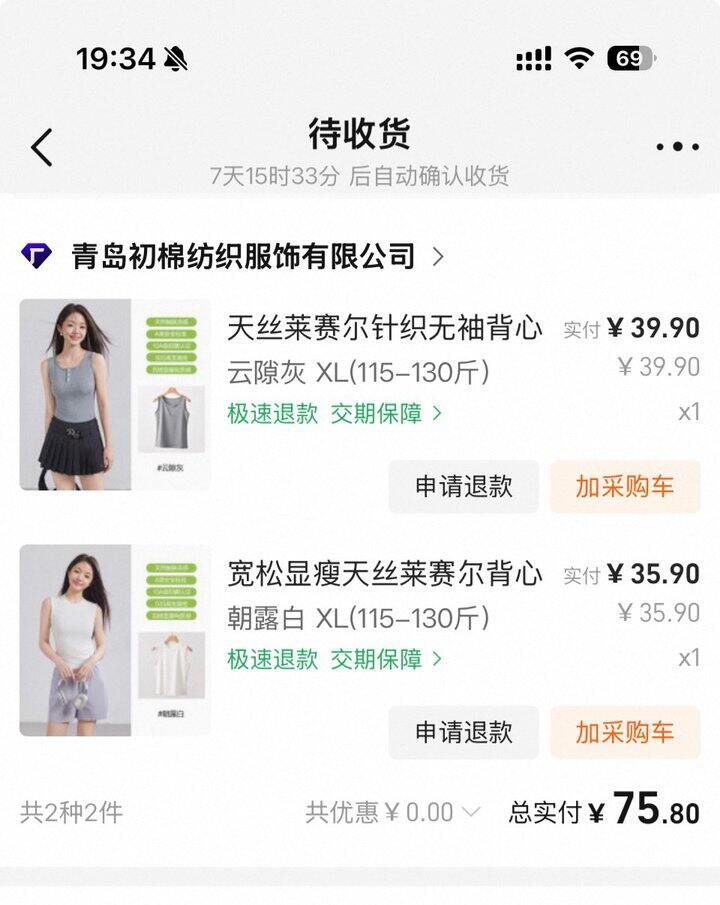 想买领口不过分低、下摆要够长(不要露脐装!)、服感舒服不过分透的背心做衬衫or薄针织衫内搭,在1688选了青岛一家店,到货着实小小惊喜了一下。