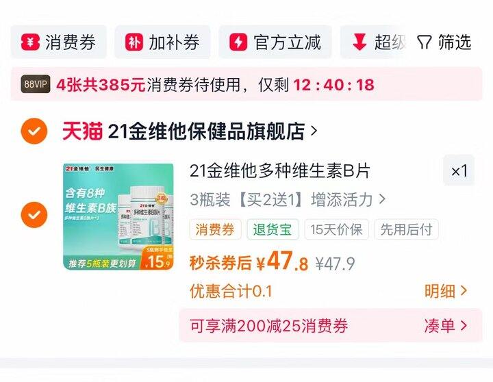 拍3瓶装✘60片💰47.8❗