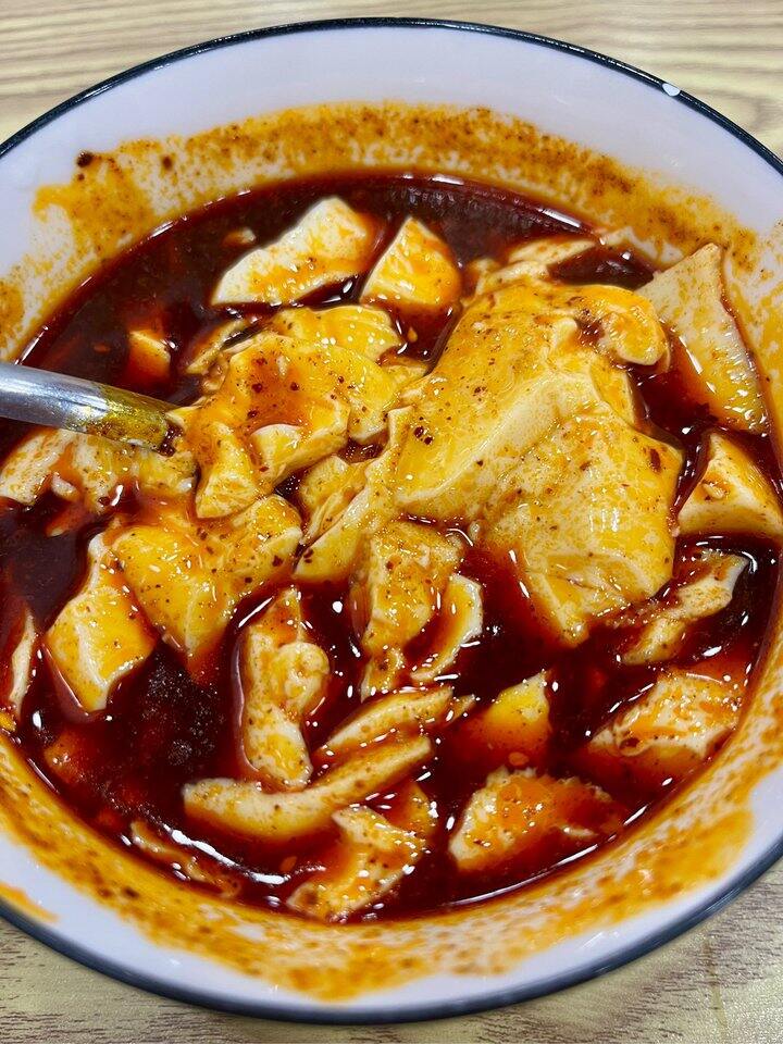第一次吃不是加卤的豆腐脑、是加的汤汁蒜汁➕辣椒油