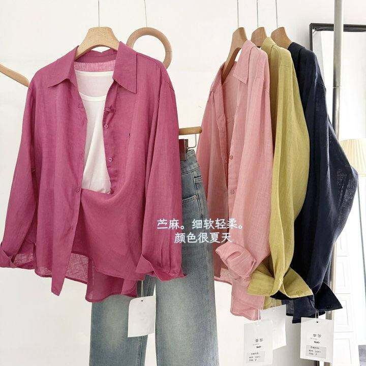 买它!太好看了!韩里韩气苎麻皮粉防晒衬衣